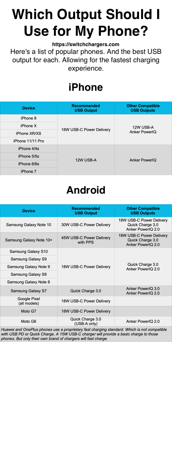 18-20W USB-C PD | 25W USB-C PD | 30W USB-C PD | 45W USB-C PD | 60+W USB-C PD